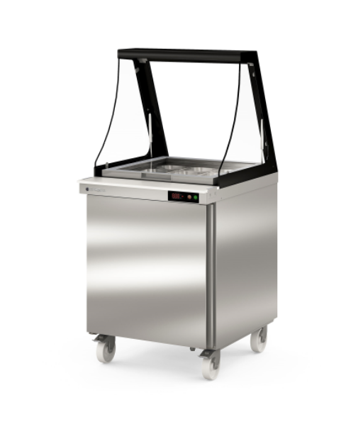 - Heavy-duty double liftable glass lid to keep temperature in the GN pans