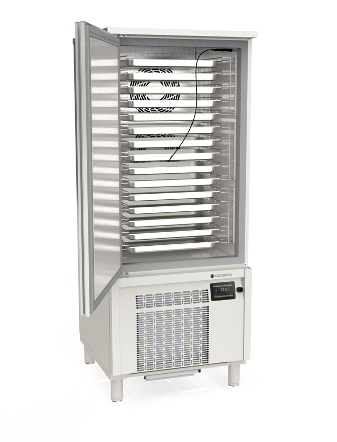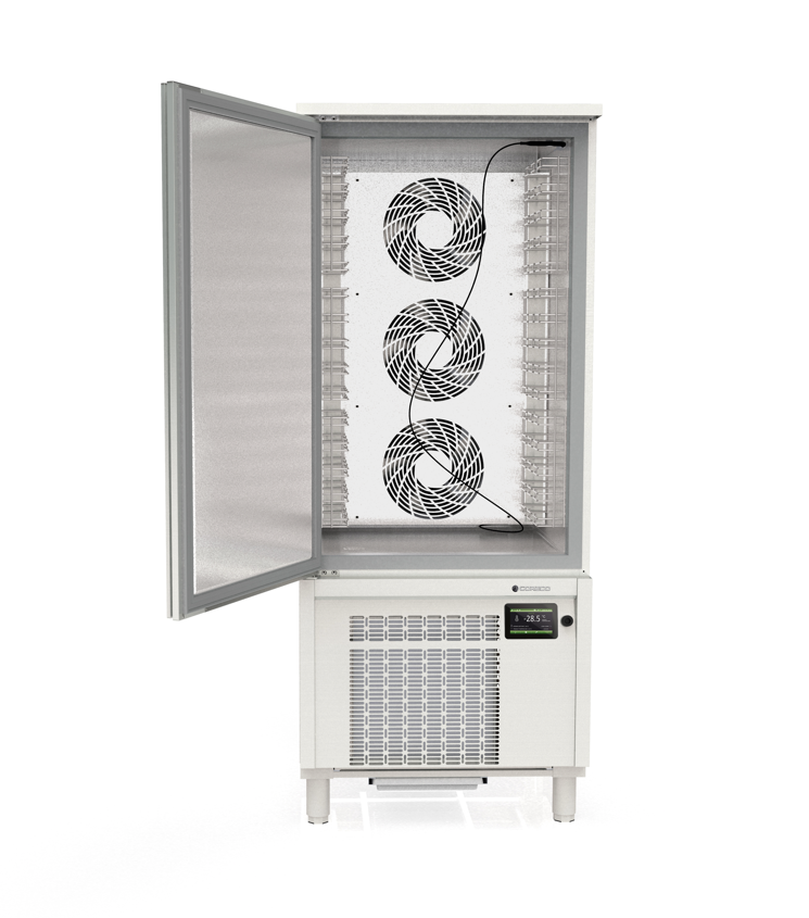 - Intérieur en acier inox AISI-304 - Portes avec système de fermeture automatique et joint magnétique (reste ouverte à plus de 90° d'ouverture)