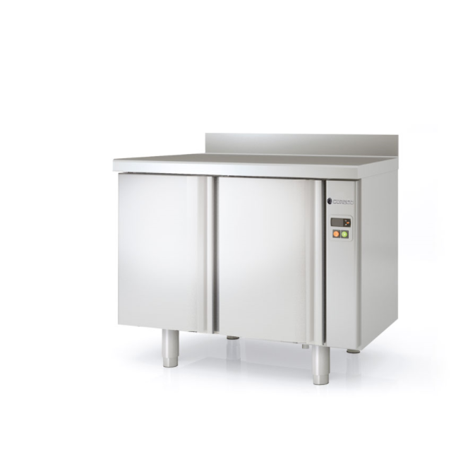 - Plan de travail en acier inox AISI-304 avec façade droite et dosseret sanitaire de