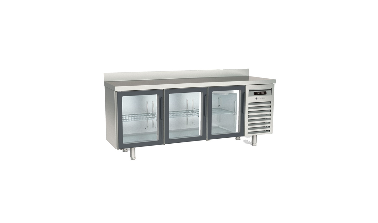 - Plan de travail en acier inoxydable AISI-304 avec façade droite et dosseret sanitaire de 100 mm (en option sans dosseret)