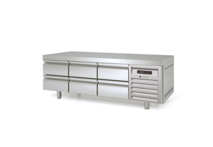 - MFB-CC : Tiroirs réfrigérés en acier inox démontables sur glissières télescopiques en acier inox, système de fermeture automatique de série