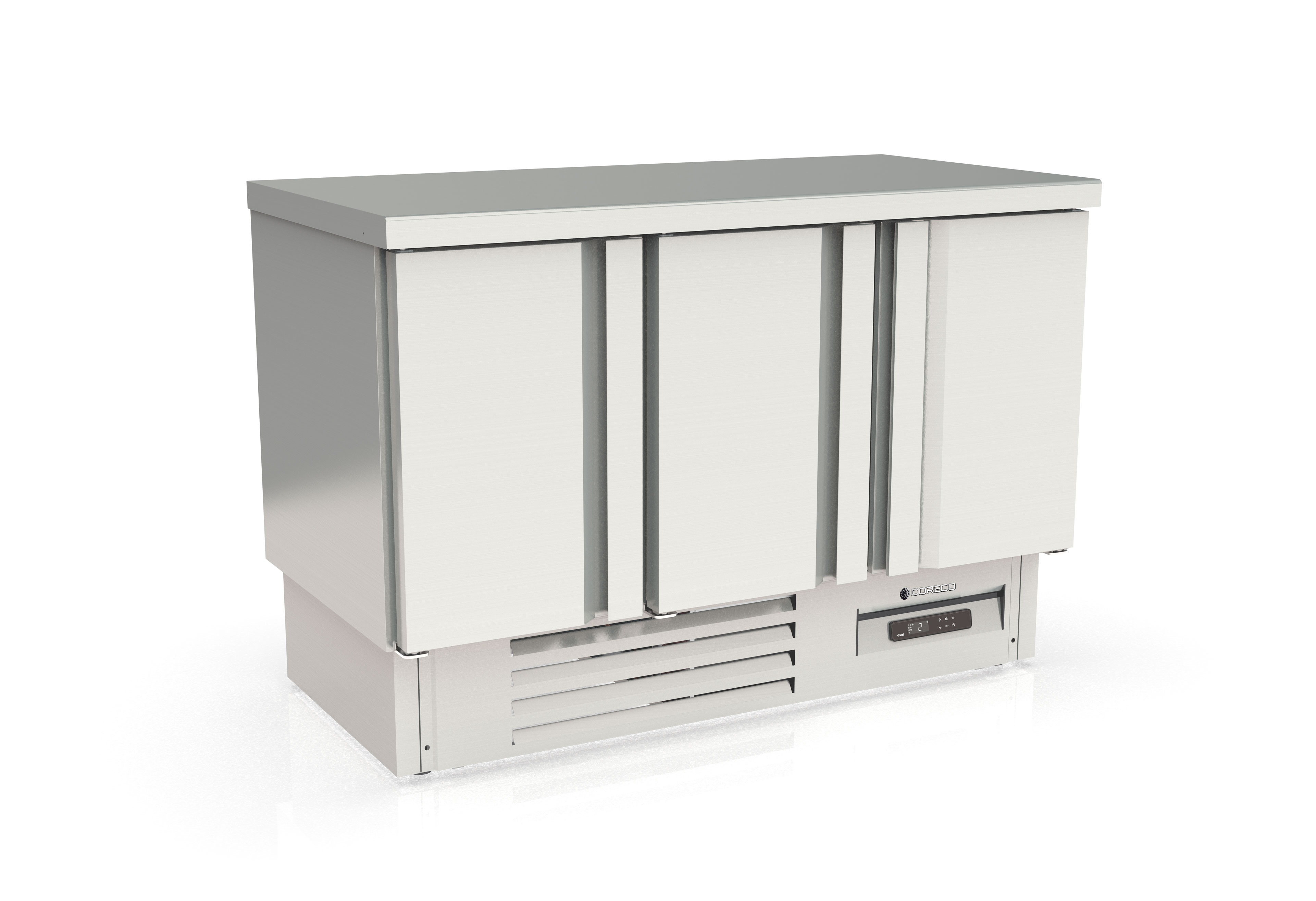 - Plan de travail en acier inox AISI-304 avec façade droite (en option avec tablier sanitaire 100