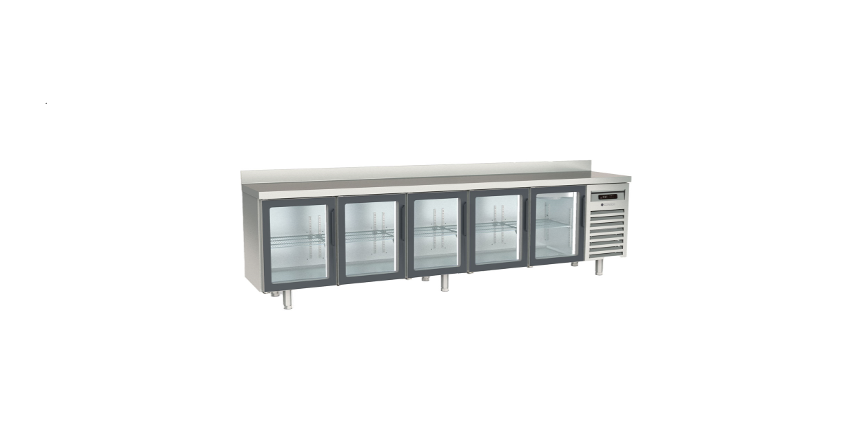 - Encimera de acero inox AISI-304 con frente recto y peto trasero sanitario de 100 mm (opcional sin peto)