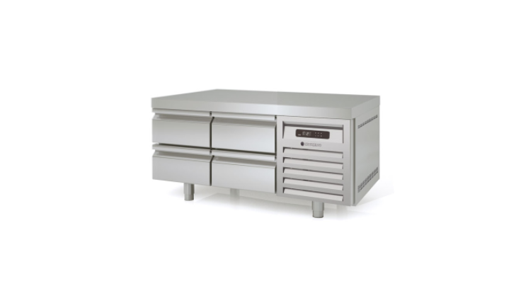 - MFB-CC: Cajoneras refrigeradas inox desmontables sobre guías inox telescópicas, sistema auto-cierre de serie