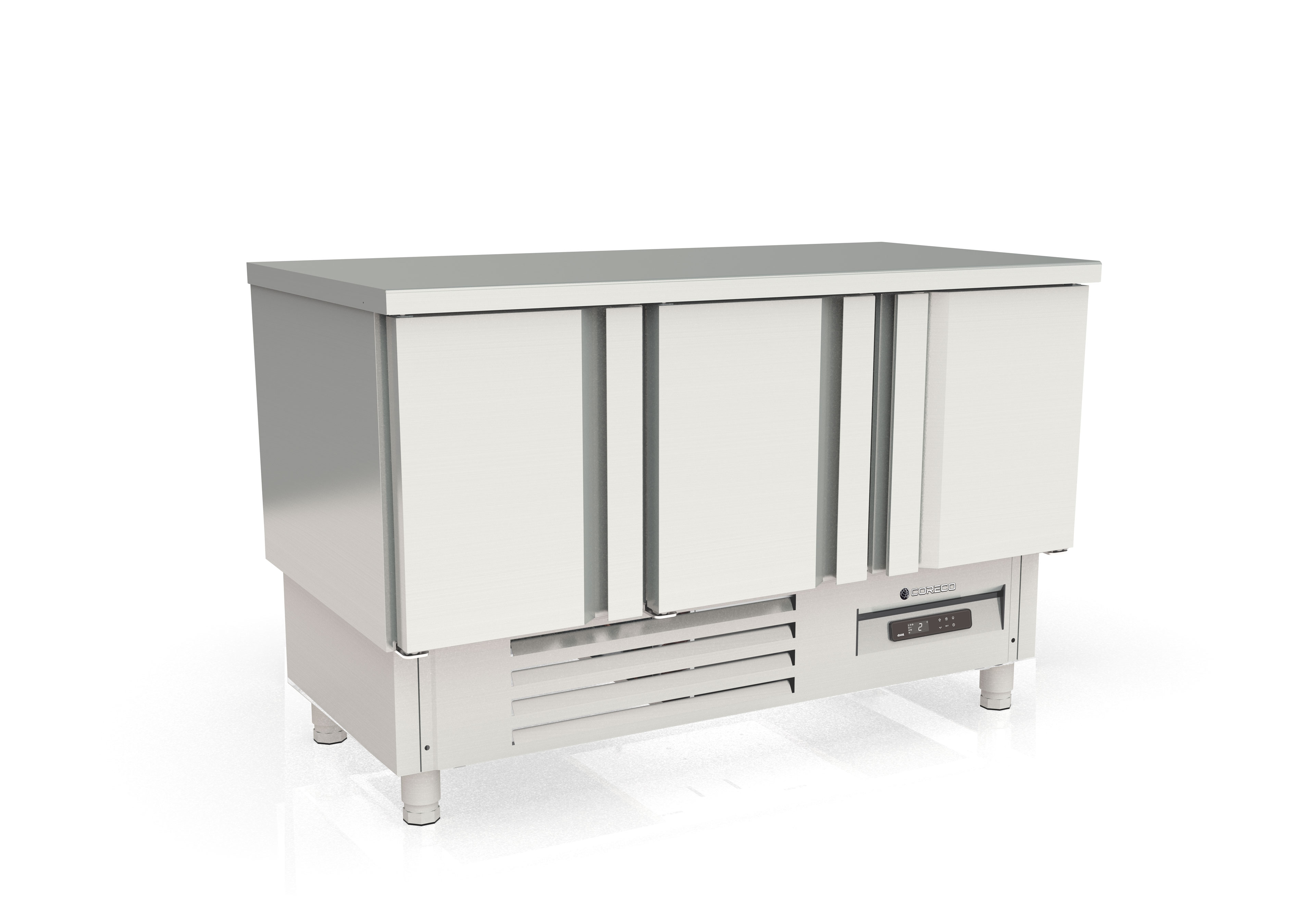 - Plan de travail en acier inoxydable AISI-304 avec façade droite (en option avec tablier sanitaire 100