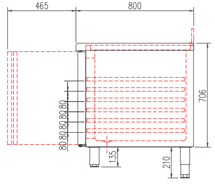 mm) - Interior con guías de acero inox, regulables en altura para parrillas, bandejas o